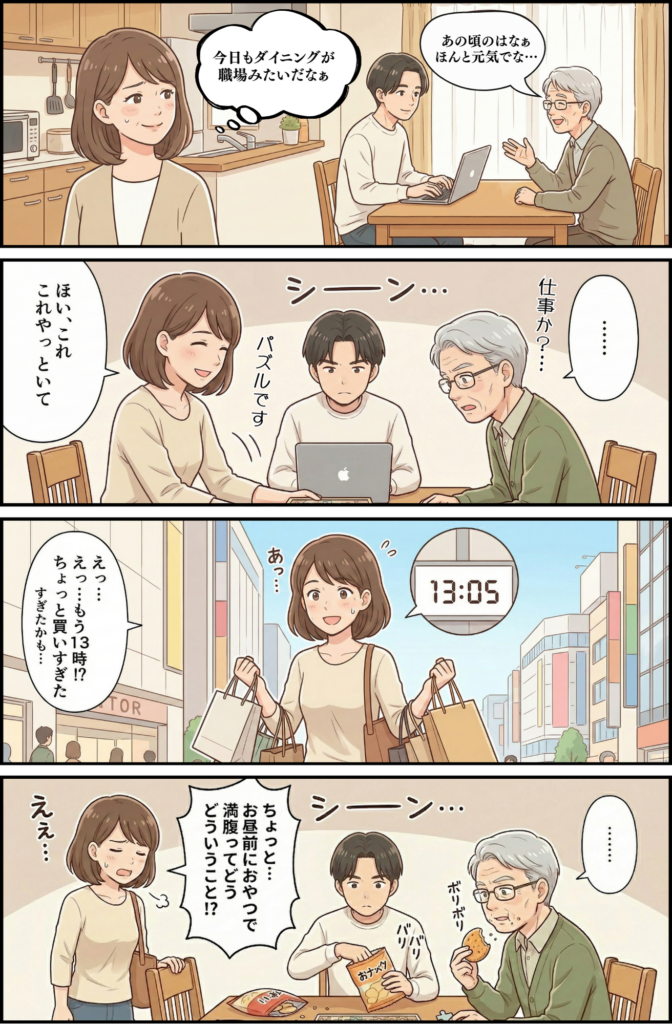 ◆帰宅すると…そこは「煎餅タイムの男たち」