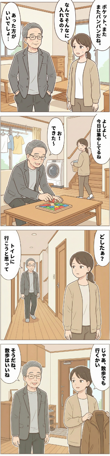 こうして、介護と認知症の日常は、今日もドタバタしながらも平和に過ぎていくのでした。