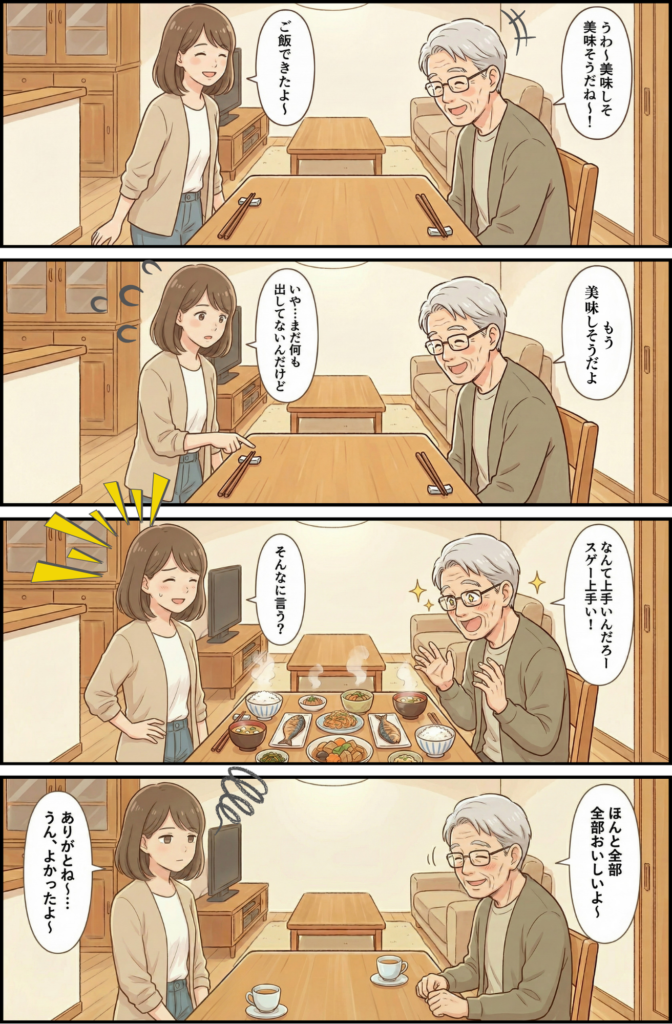 と、義父の安定の“ベタ褒めモード”に突入。