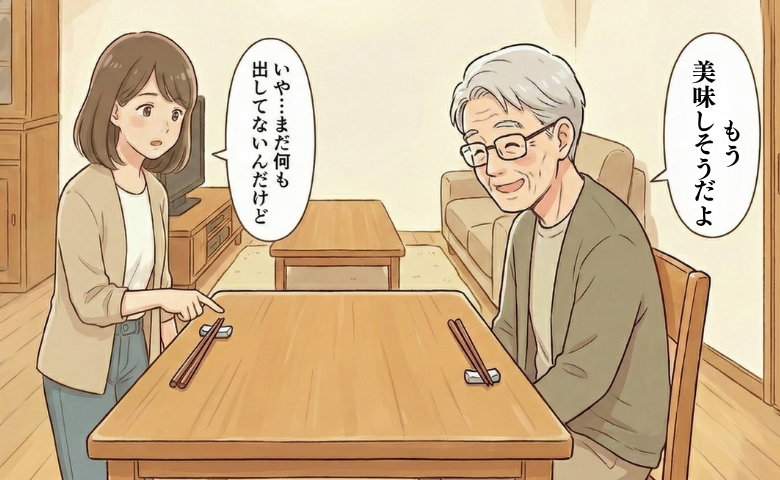 今日の夕ご飯、いつものように私が「ジイジ、ご飯だよ〜!」と声をかけ、